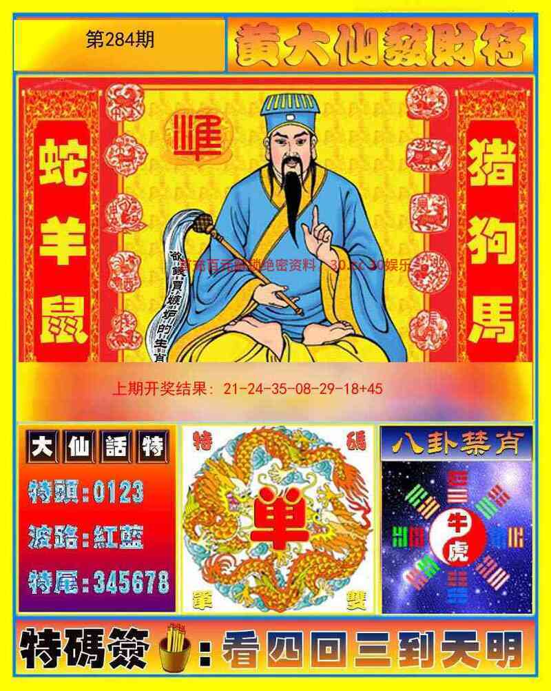 287期:密门仙机/心水特码信/黄大仙天书/波色生肖诗/生肖歇后语